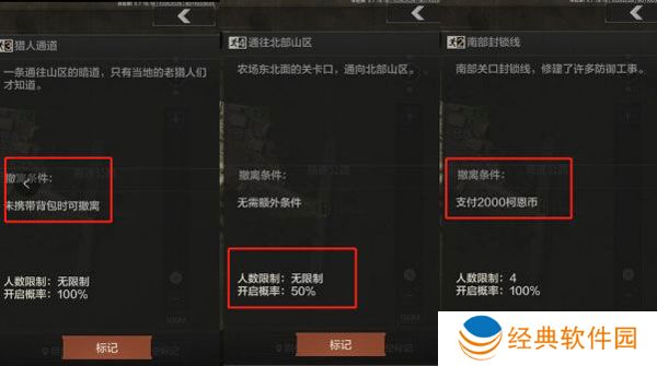 A5:部分撤离点并不是可以100%撤离的;另外,有的撤离点是需要满足条件才能撤离。有的撤离点存在开启概率,不一定会开启,所以大家最好是选择100%概率的撤离点。