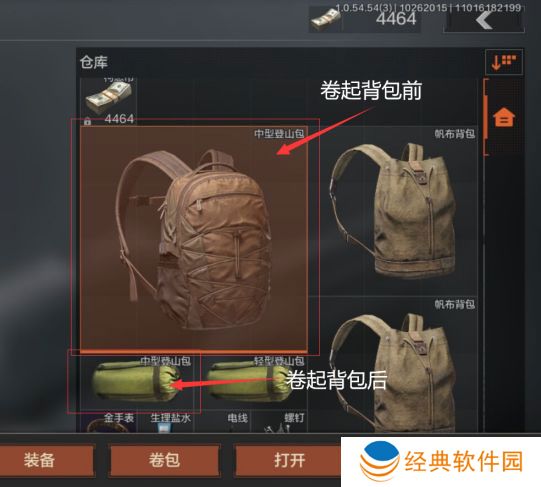 不同的容量的背包所占的仓库空间是不同的,大家就可以将背包卷起来,这样所占的空间就会变小,就可以获得更多放置物品的位置了。