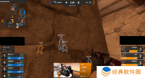 下半场Liquid来到进攻方,手枪局同样选择进攻A区,但是遇到GL四人重防,最终GL凭借枪位优势轻松拿下胜利。次回合Liquid强起再次进攻A区,同样的飞二楼战术被GL一波带走。比分顺势来到9-6。