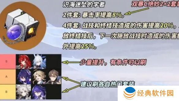 2、四件套:我方单体目标施放战技或终结技时,可以提高18%的暴击伤害,持续2回合,效果最多叠加2次。