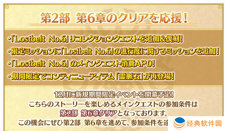 新的限时活动将于 12 月开始。参加条件是通关第二部第六章“异闻带第六章妖精圆桌王国阿瓦隆·勒·菲,星辰诞生之时”。