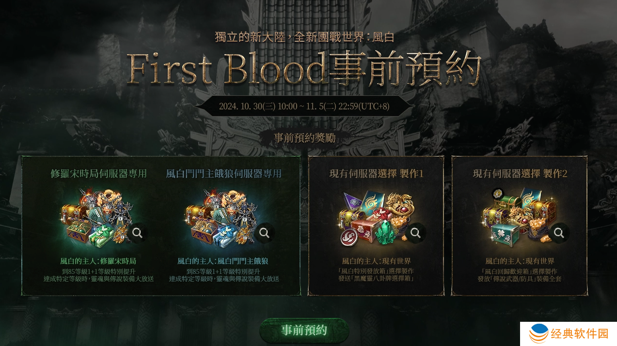 现有服务器可以获得「[传说] 风白门传说饰品 / 贵重物品箱、风白门门主的心脏、风白门服装:均衡、[传说] 混沌灵魂碎片 (25 个) 选择袋、First Blood 事前预约选择制作铸币」等奖励。