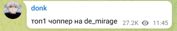 donk也在赛后称赞了chopper在对阵NAVI战队时的发挥:“Mirage上的TOP1,chopper”