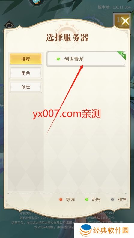2、进入后选择一个你想玩的区服