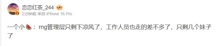 直播吧12月6日讯 近日RNG饱受债务困扰,网传官方甚至已经限制了其参赛资格,对此知名LPL爆料人恋恋红茶表示:目前RNG工作人员已经走的差不多了,只剩几个妹子了!