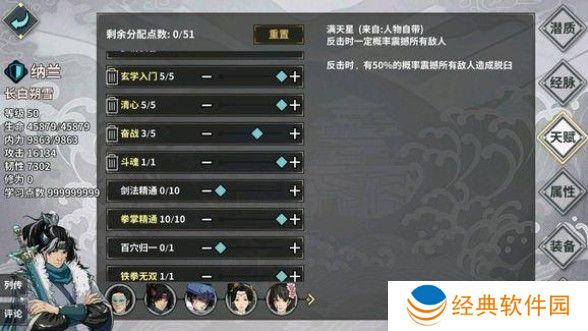 为了最大保证存活,潜质用老成门徒,不费天赋点的坚毅buff,空血触发满奋战,一刀逆风翻盘,打不死还能把血吸回来。