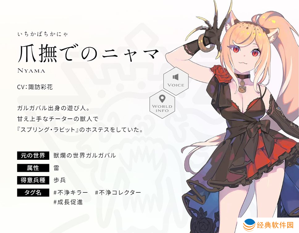 加尔加巴出身的赌徒。擅长撒娇的作弊者兽人,曾是『Spring Rabbit』的公关小姐。