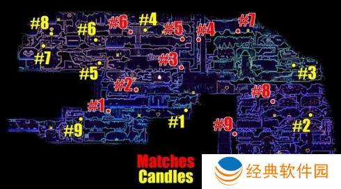 在地图左上部分的下保存室的左侧,有一个暗室,敌人会在其中生成。这个房间的右上角有一支蜡烛。