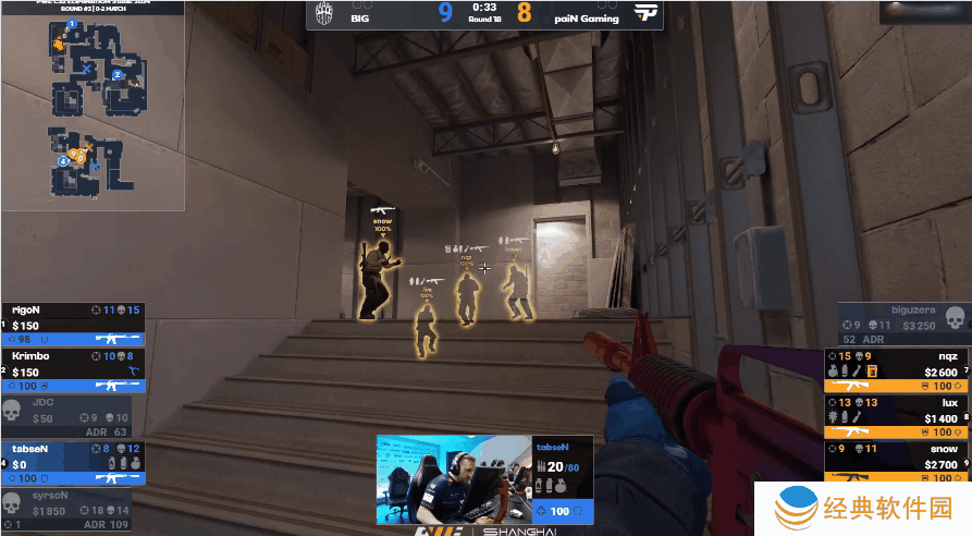在第18回合中,tabseN选择绕后,在他面前的是paiN战队众多队员的背身。但台下的观众难掩激动,引发的声浪让paiN战队选手snow回头查看并击杀了tabseN。而对此tabseN也颇为无奈。最终paiN 13-10拿下了这张图。