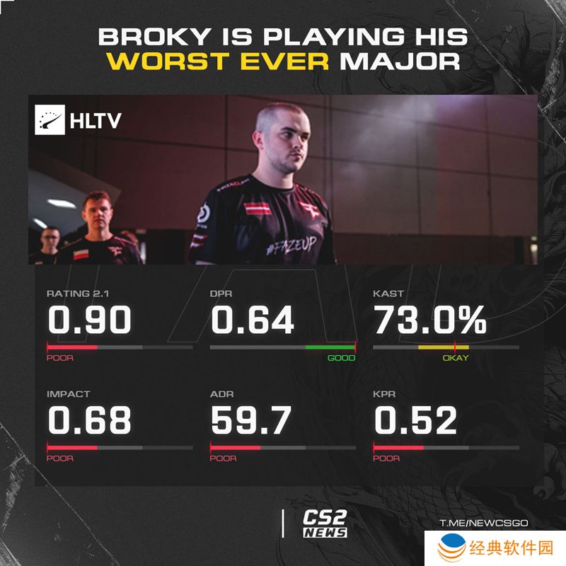 而尽管broky是队伍中这场比赛发挥最好的选手,但事实上这依旧是他个人Major史上的最差赛事数据。
