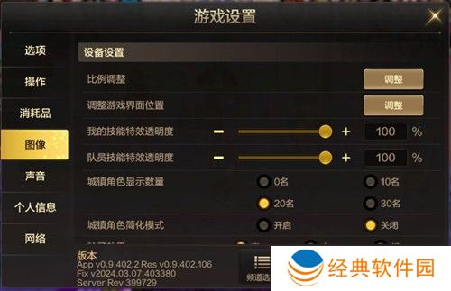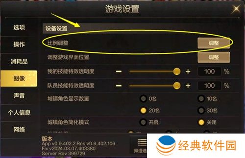 2、进入设置页面,点击【图像】,然后点击【比例调整】,调整一下比例和游戏页面位置。
