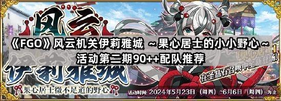 FGO风云机关伊莉雅城活动第二期90++怎么配队?FGO风云机关伊莉雅城活动即将开启,这次的高难本想必许多小伙伴还不知道怎么配队,那么接下来就跟着小编一起来了解一下《Fate/Grand Order》风云机关伊莉雅城 ~果心居士的小小野心~第二期90++配队推荐。