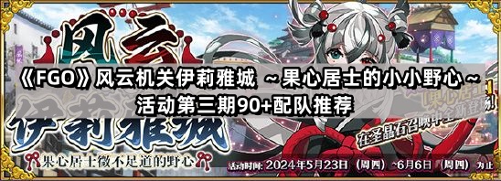 FGO风云机关伊莉雅城活动第三期90+怎么配队?FGO风云机关伊莉雅城活动即将开启,这次的高难本想必许多小伙伴还不知道怎么配队,那么接下来就跟着小编一起来了解一下《Fate/Grand Order》风云机关伊莉雅城 ~果心居士的小小野心~第三期90+配队推荐。
