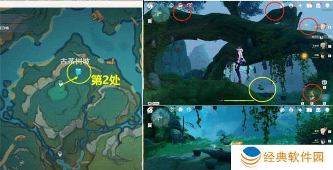 1、前去到【古茶树坡】位置,靠近古树树干会有四个蝴蝶,找到四个蝴蝶以后;