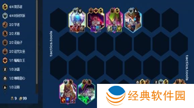 羁绊:4复苏 4时间学派 2学者 2术师 2花仙子 2诅咒女巫