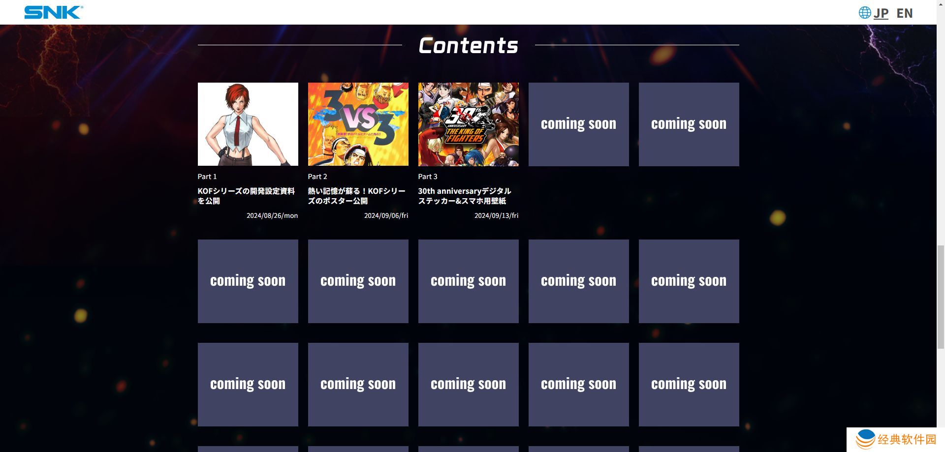进入《拳皇》:30周年纪念网站,玩家可以查阅系列的机密开发资料,历代作品的海报宣传资料、30th anniversary的精美数字贴画、手机壁纸等等也将陆续发布。