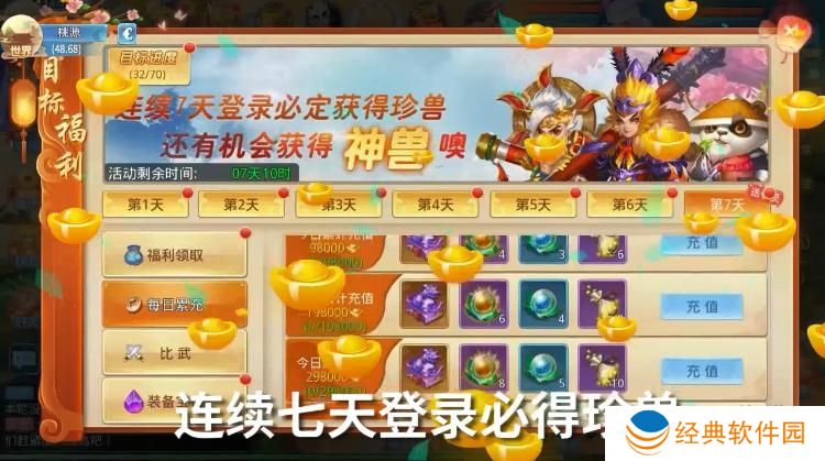 3.登录福利大放送,超值培养道具送不停,超强仙灵等你拿,还有真充大狂欢,登录福利享不停!150级大礼送无限真充,每日登录送真充!