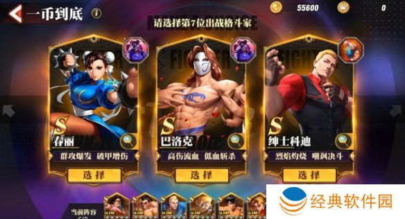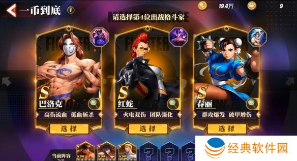 一币到底玩法出现的格斗家是随机的,而我们要想玩风队,在选格斗家时全部往风队上凑。核心两个格斗家是春丽和巴洛克,想玩范围+连招伤害,选春丽;要玩流血斩杀流,选巴洛克。