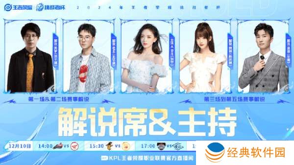 解说席&主持人:解说美梦 (闵子端)、解说老王ww (王华斌)、灵儿chili (刘宁)、解说琪琪 (杨泽琪)、解说潇洒洒 (李潮)