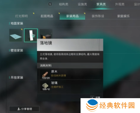 3、只需耗费20块木头和10块玻璃材料,便可制作出落地镜,一旦制作完成即可立即使用。