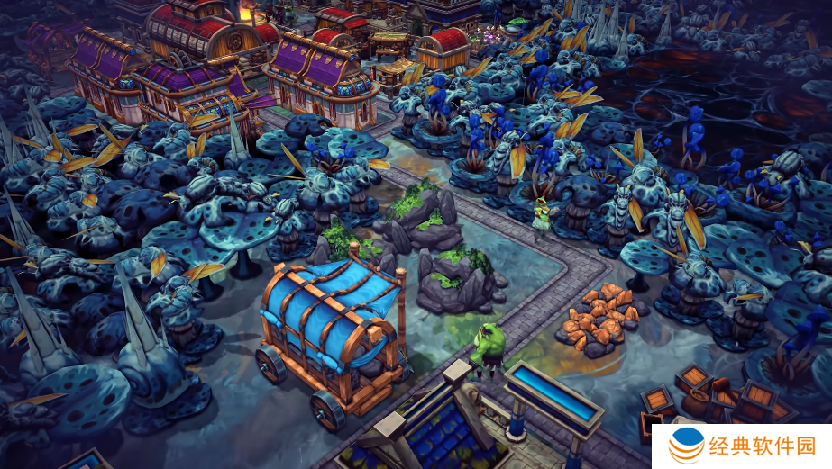 管理蛙族——一个新的可玩种族——将他们的石工技能和雨朋克风格融入您的战略中。