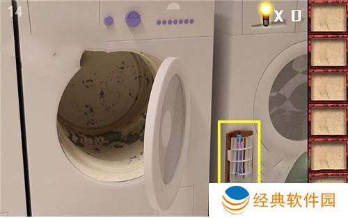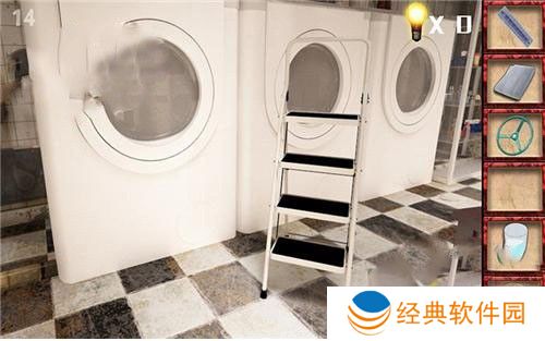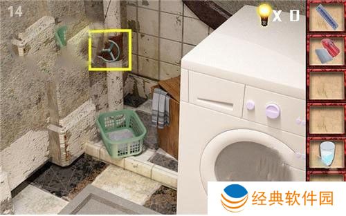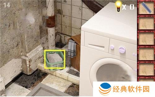 1、进入第十四关,首先前往右边洗衣机,在旁边拿到灯。