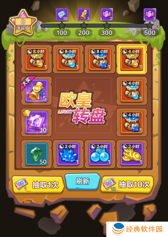 每层以及最终探索成功后都会获得抽奖券用于抽奖,抽奖分为幸运转盘和欧皇转盘两种,转盘中的大奖可以通过刷新的方式进行随机更换,这个还是看个人所需。