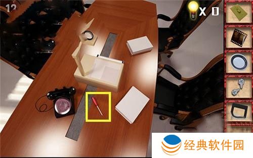 4、拿完桌子上的5件道具后,到中间会议桌上找到螺丝刀。