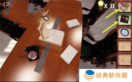 1、进入第十二关,我们首先查看左前方的桌子,位置如上图所示。