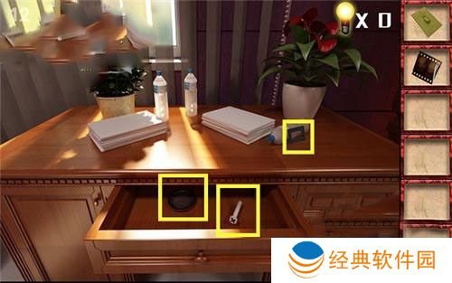 3、然后再到后面一张桌子,打开抽屉,拿到这3样道具,具体位置如上图所示。