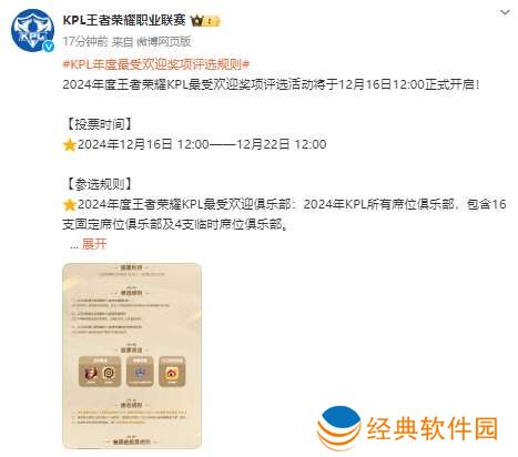 2024年度王者荣耀KPL最受欢迎奖项评选活动将于12月16日12:00正式开启!