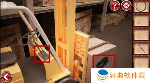 6、来到右上角的箱子处,用撬杠撬开箱子,然后再将电线和电焊笔组合在一起,修好箱子里的电路。