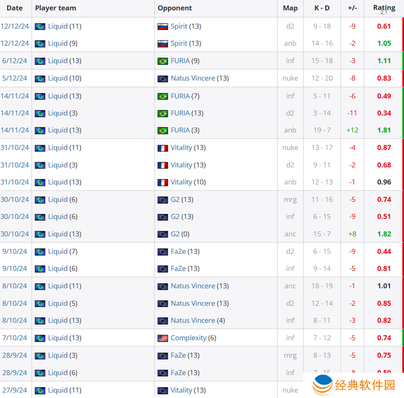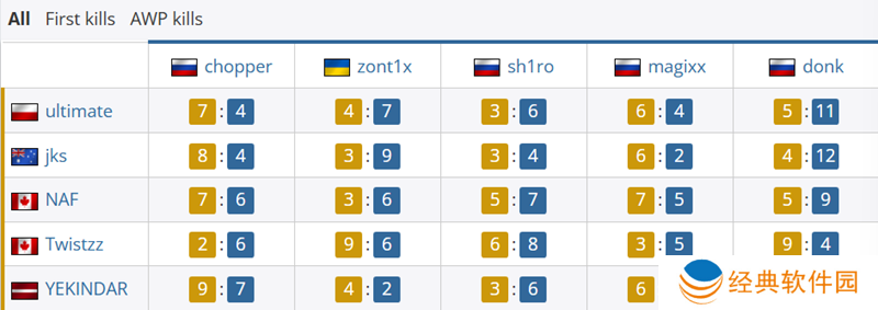 Spirit被淘汰。而从赛后数据看,双方明星步枪手的差距非常明显。