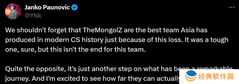 YNk:我们不应该因为这次失利而忘记The MongolZ是亚洲现代CS历史上最强的队伍。这场比赛确实很艰难,但这并不是这支队伍的终结。