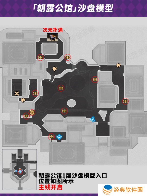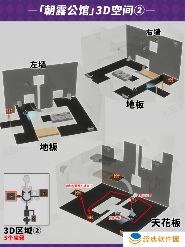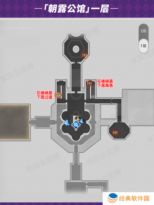 1.崩坏星穹铁道朝露公馆宝箱一层位置如下: