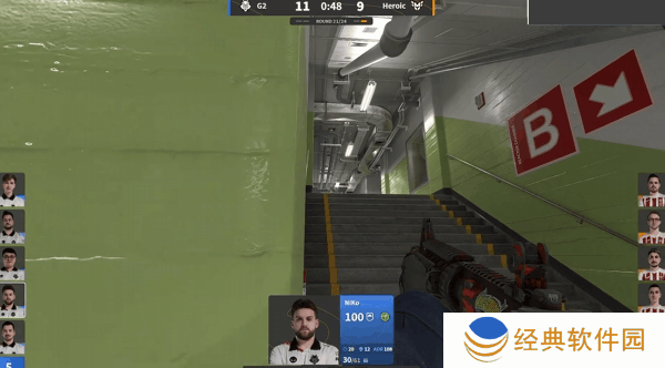 下半场手枪局NiKo外场白给,Heroic完全掌控外场,四面楚歌的G2输掉了手枪局,下一回合G2选择强起,malbsMd前顶B通拿到首杀,Heroic走外场打B,NiKo在活门沙鹰一发带走degster,随后退到包点再一发收掉了TeSeS,走铁板的kyxsan姗姗来迟再被NiKo一发带走,NiKo一波三杀成功翻盘。
