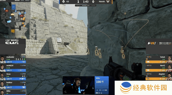 在NiKo的发挥下G2将比分拉开到11-8,这一回合NertZ早早走到了正门,打掉NiKo之后A区门户大开,Heroic艰难的拿下一分,下一回合还是NiKo,一人顶在活门拖延了对手进攻,同时完成三杀,赛点局NiKo和m0NESY双人五杀赢下图二。