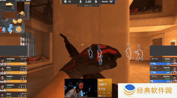 手感火热的NiKo趁热打铁,连续三回合的多杀成功追平了比分,同时也激活了m0NESY,NiKo一波发挥带领队伍逆转比分。