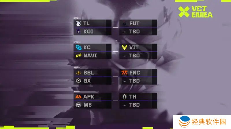 2025 VCT EMEA联赛官方账号更新了2025赛季启点赛赛程。其中,参加世界赛的四支队伍:FNC、VIT、TH、FUT率先晋级第二轮。首轮对阵为:TL vs KOIKC vs NAVIBBL vs GXAPK vs M8