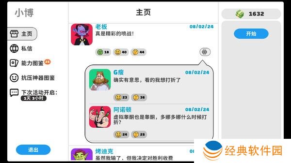 在超级键盘侠的世界中,你可以真的顺着网线打到对面!看谁不爽即刻使用表情包向他发起挑战!当然世间还是好人多,你对他人的帮助最终会得到回报!种类繁多的强化组合不同的流派,每次战斗都有不同的惊喜和挑战。诙谐幽默的主线故事和事件,不乏令人会心一笑的网络名梗。在数不清的战斗与抉择中,一步一步走向互联网食物链的顶端!