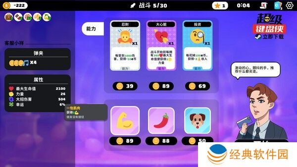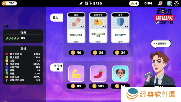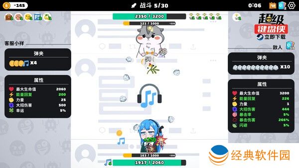 牌组构建式类ROGUE游戏《超级键盘侠》于今日(2024年9月14日)正式上线,在游戏里面化身超级键盘侠,发射表情包和网络喷子战斗!肉鸽但是放置,无需操作也可暴揍对方。体验诙谐幽默的主线故事,在一次又一次的战斗中不断强化自己,坚持到最后挑战幕后黑手BOSS。