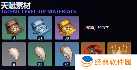 提升为4级:「焚燔」的指引*4、老练的坚齿*4、25000摩拉