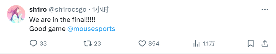 sh1ro:我们进决赛了!GG MOUZ!