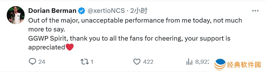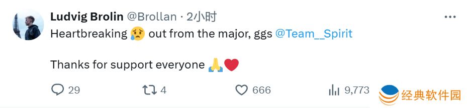 Brollan:令人心碎,从Major出局了,GG Spirit,谢谢大家的支持。