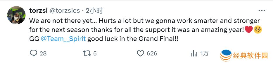 torzsi:我们还没有足够强大....虽然很痛苦,但我们下个赛季会更加努力,更加强大。感谢大家的支持,这是很精彩的一年!