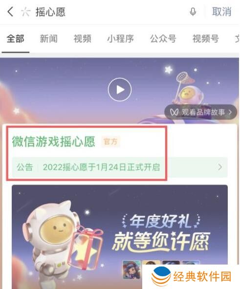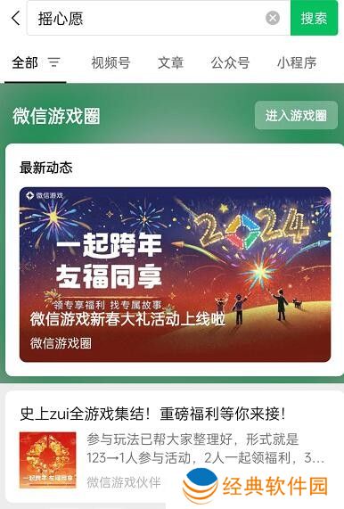 1、首先进入微信,搜索摇心愿,打开微信的游戏圈,进入到友福共享的活动界面。