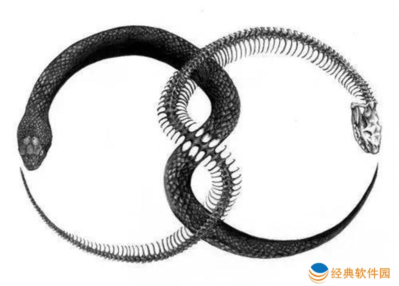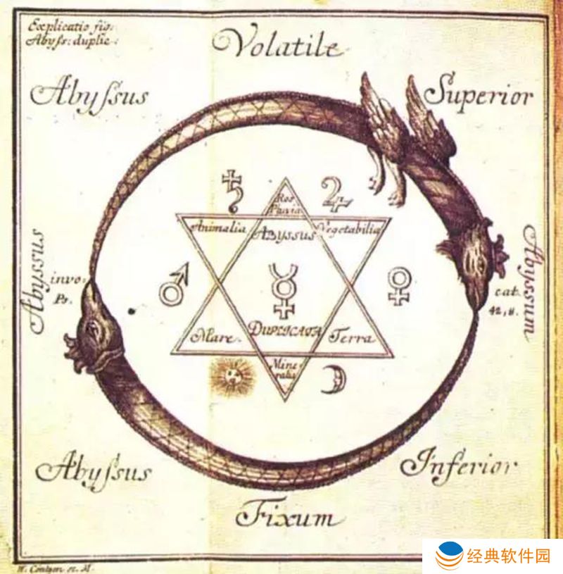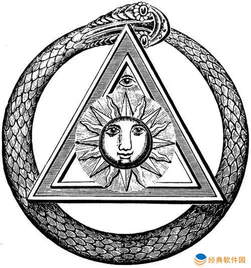 衔尾蛇是一种诺斯底主义和炼金术的符号,表达了所有事物的统一性,无论是物质的还是精神的,它永远不会消失,而是在毁灭和再创造的永恒循环中不断改变形式。