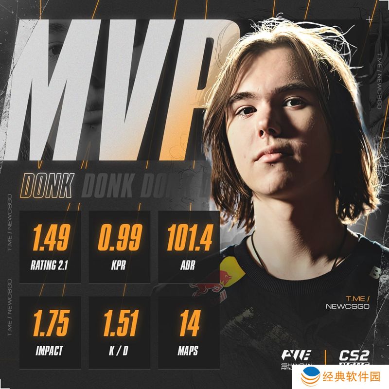 FaZe战队夺冠。而donk也凭借自己恐怖1.49的赛事rating成为本届Major当之无愧的MVP。