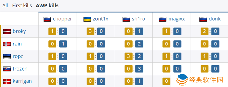 Robin Kool | ropz平分秋色之外,对于其他FaZe选手也占据优势。