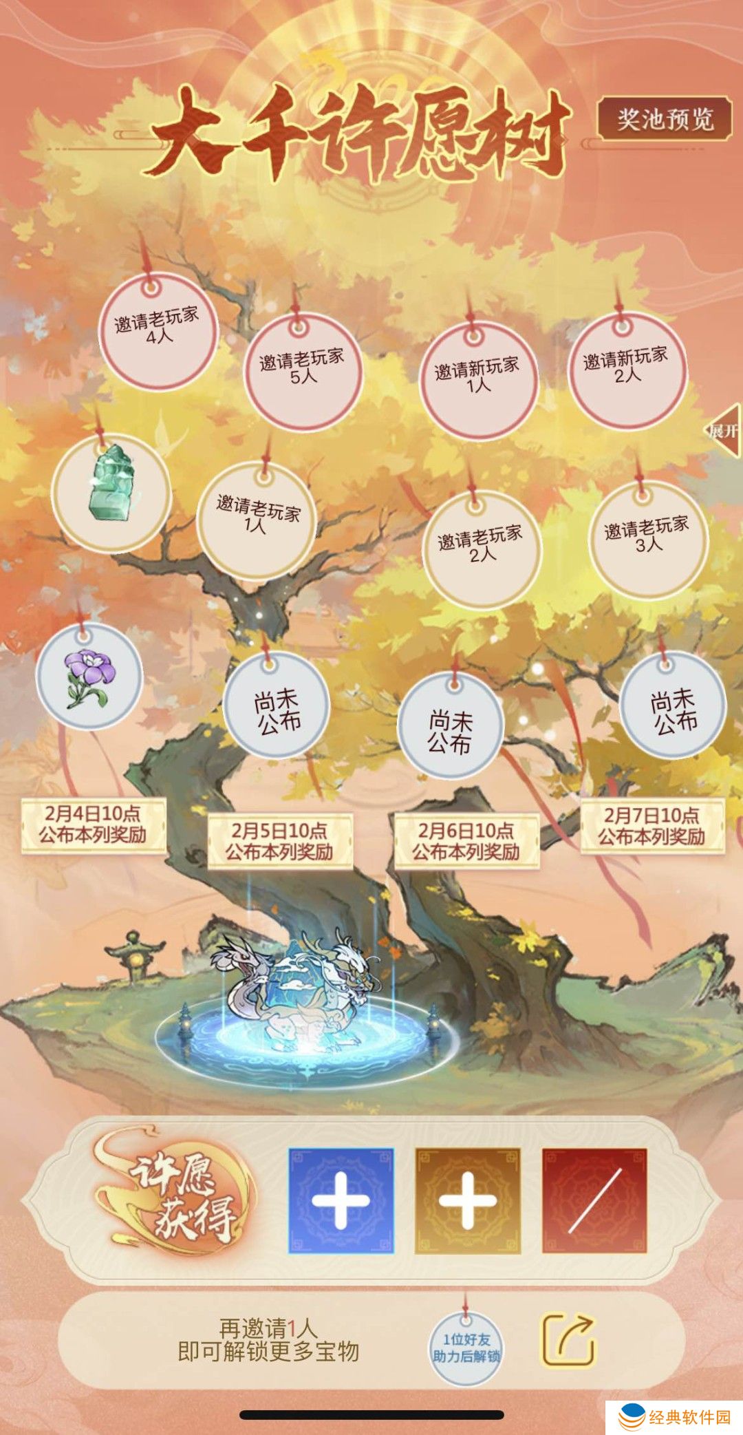 寻道大千春节活动大千许愿树怎么玩?许愿树上将有三层不同等级的奖励,每层最多可刷新出4个宝物。道友可在每层挑选一个心仪奖励带走,那么具体玩法接下来就跟着小编一起来了解一下《寻道大千》春节活动大千许愿树攻略。
